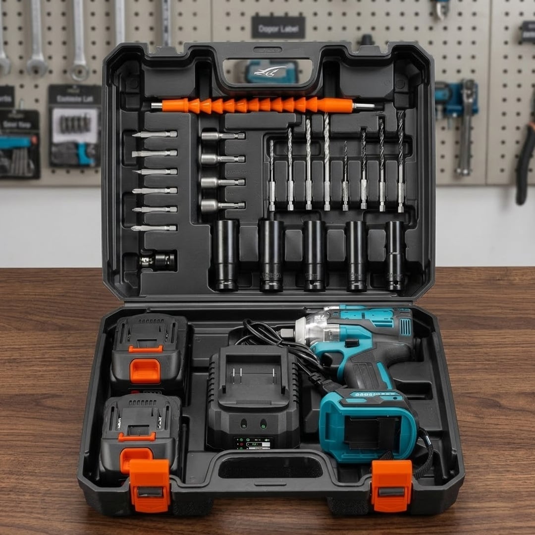 قوة احترافية بين يديك مع دريل الصدمات اللاسلكي بتقنية المحرك بدون فحمات (Brushless) — أداء عالي، بطاريتان قابلتان للشحن، وطقم أدوات متكامل يمنحك جاهزية كاملة لأي مهمة تركيب أو صيانة.
