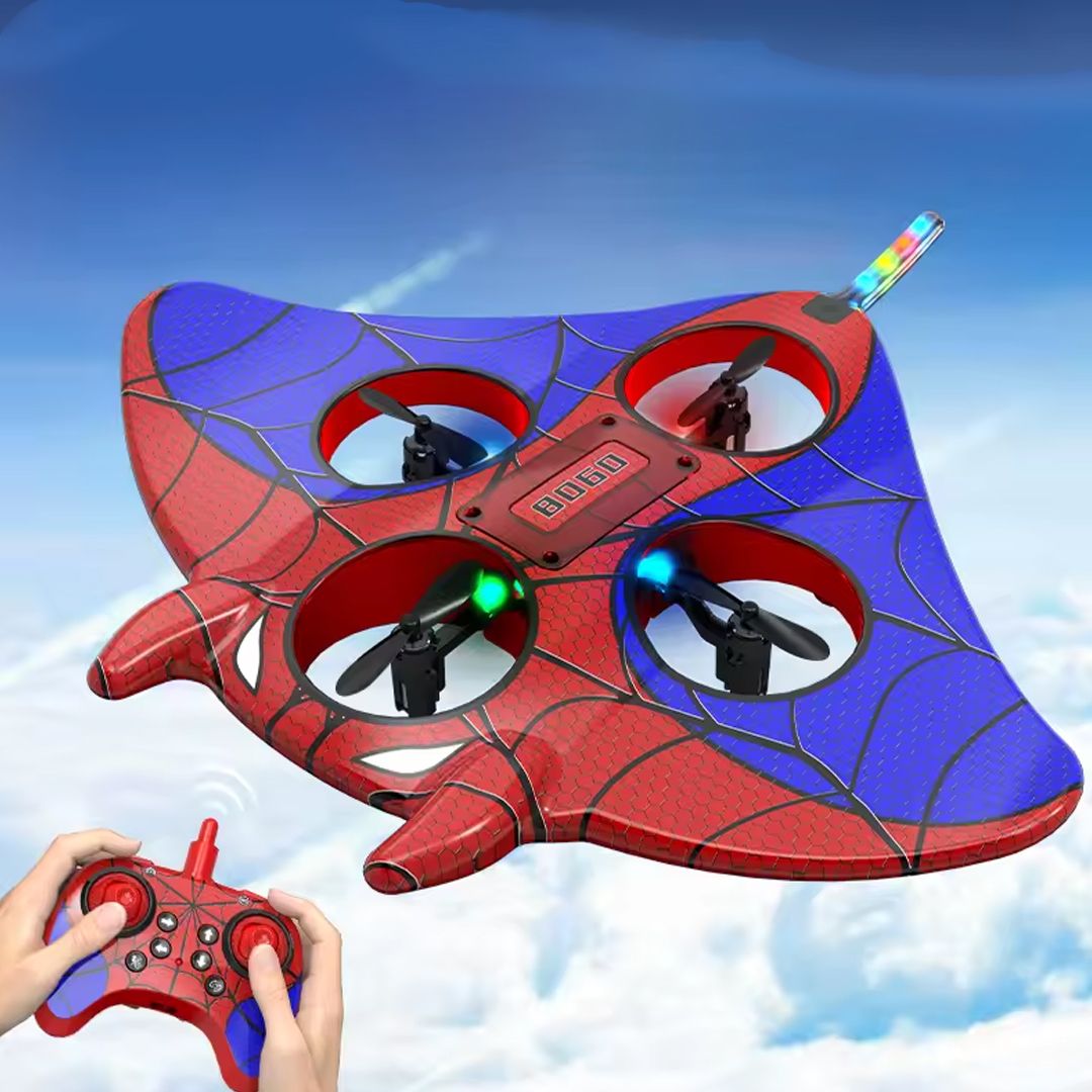 التصميم: درون ألعاب بتصميم عصري مستوحى من شخصيات الأبطال،هيكل انسيابي يقلل من الصدمات ويزيد الأمان أثناء اللعب، مع إضاءة LED تضفي تجربة طيران ممتعة وجذابة.