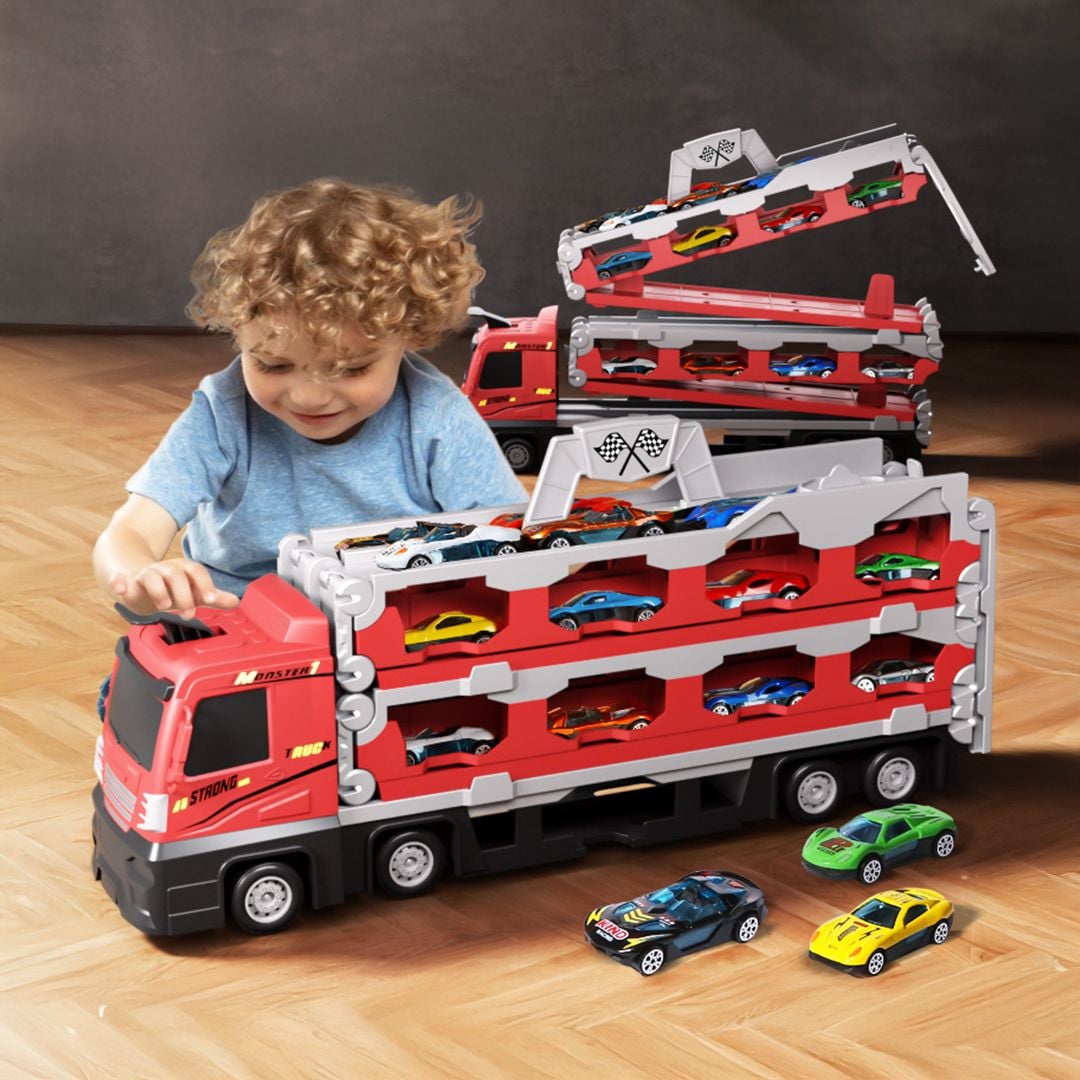 لعبة مبتكرة تجمع بين شاحنة نقل كبيرة ومسار سباق قابل للتجميع بالاضافة ل 24 سيارة صغيرة، مصممة لتوفير تجربة لعب تعليمية وممتعة للأطفال، مع تعزيز مهاراتهم الحركية والإبداعية