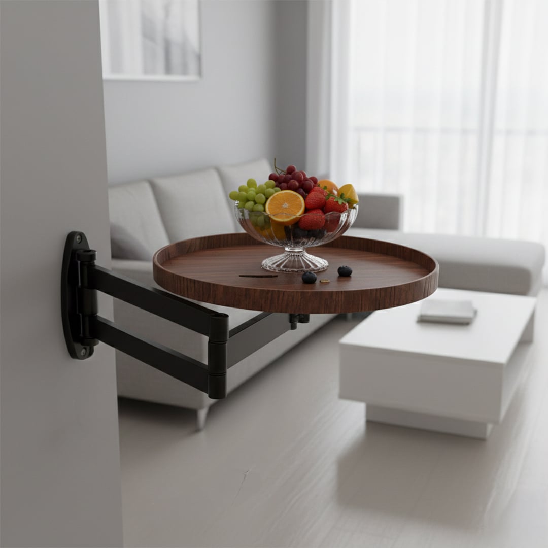 أضف لمسة عملية أنيقة إلى مساحتك مع هذه الطاولة الجدارية القابلة للتمديد — تصميم ذكي يجمع بين الدفء الخشبي والثبات المعدني ليمنحك سطحًا عمليًا يتحرك معك بكل سلاسة، سواء للقهوة، الهاتف، أو تفاصيلك اليومية.