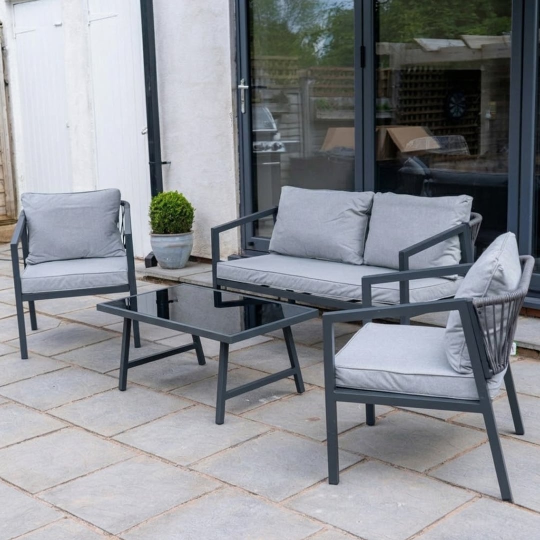 ليس مجرد طقم جلوس… بل مساحة ضيافة مدروسة بعناية تمنح تراسك أو حديقتك حضورًا عصريًا متوازنًا يفيض بالأناقة. تناغم مثالي بين الراحة والعملية في تكوين هندسي متناسق يضم كرسيين مفردين بتصميم مريح، كنبة ثنائية رحبة، وطاولة مستطيلة أنيقة تكمل المشهد بانسيابية راقية.