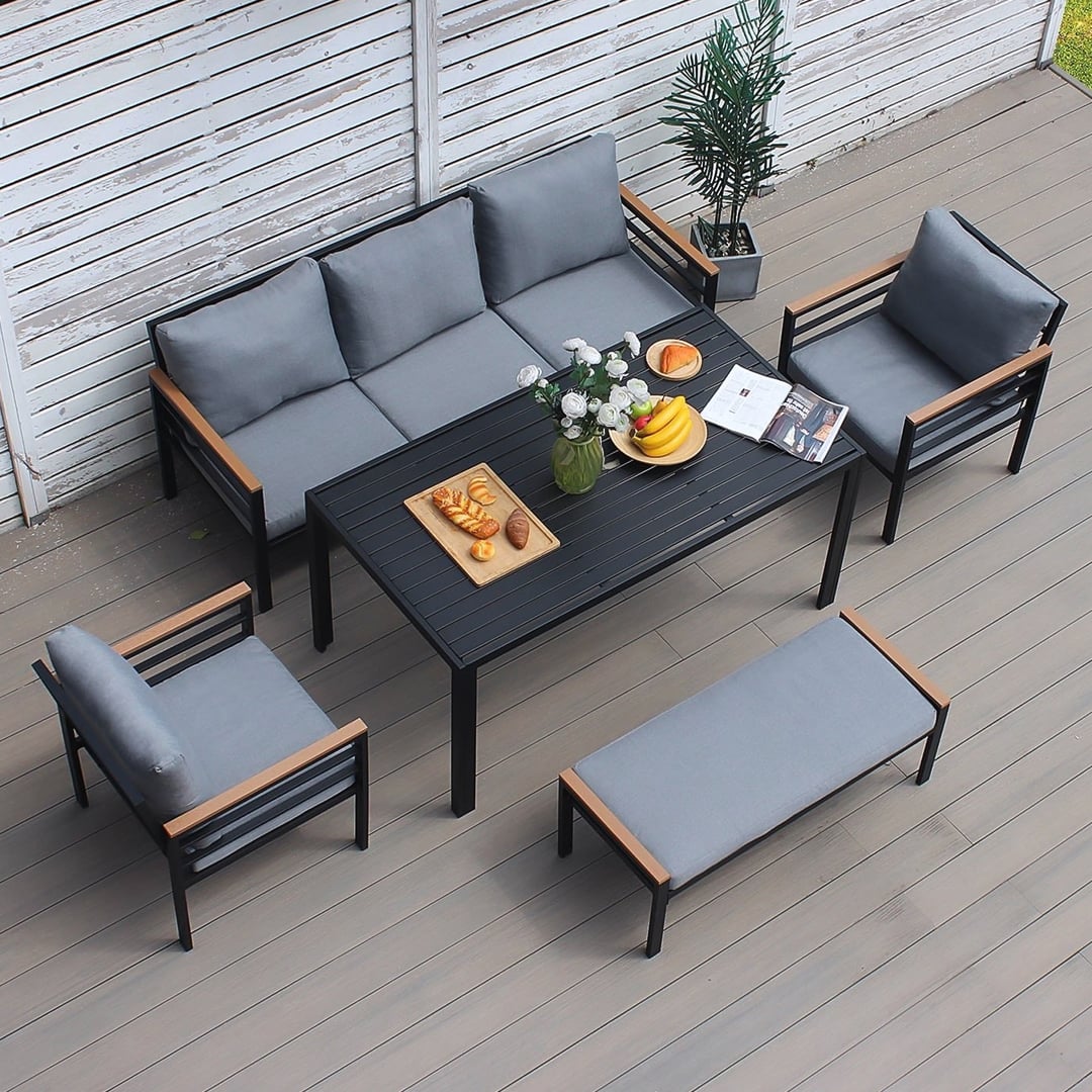 طقم جلوس خارجي مودرن مع بنش – 5 مقاعد - صورة توضيحية